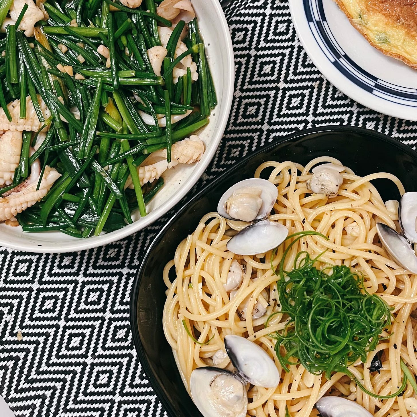 今天煮的和風蛤蠣義大利麵、透抽炒韭菜花很美味,就是因為這些繁複的工作,使我得以尊重食物。知道一切得來不易,是一種很個人也很意義深遠的感受,我感謝那些滋養我的純粹,也感謝自己,至少這一頓沒有辜負它們的存在與貢獻。並且,我的付出也確實地為我愛的人帶來能量,無論是料理洛是家務,我的每一天就在:收拾 → 弄亂 → 收拾,這樣的循環中擺盪,每天都會有一種徒然的感受,但實質上卻在「創造 → 重整」的過程中獲得自我的信心,有能力去付出與貢獻,是日常平凡小事也能創造出來的神奇魔法呢!